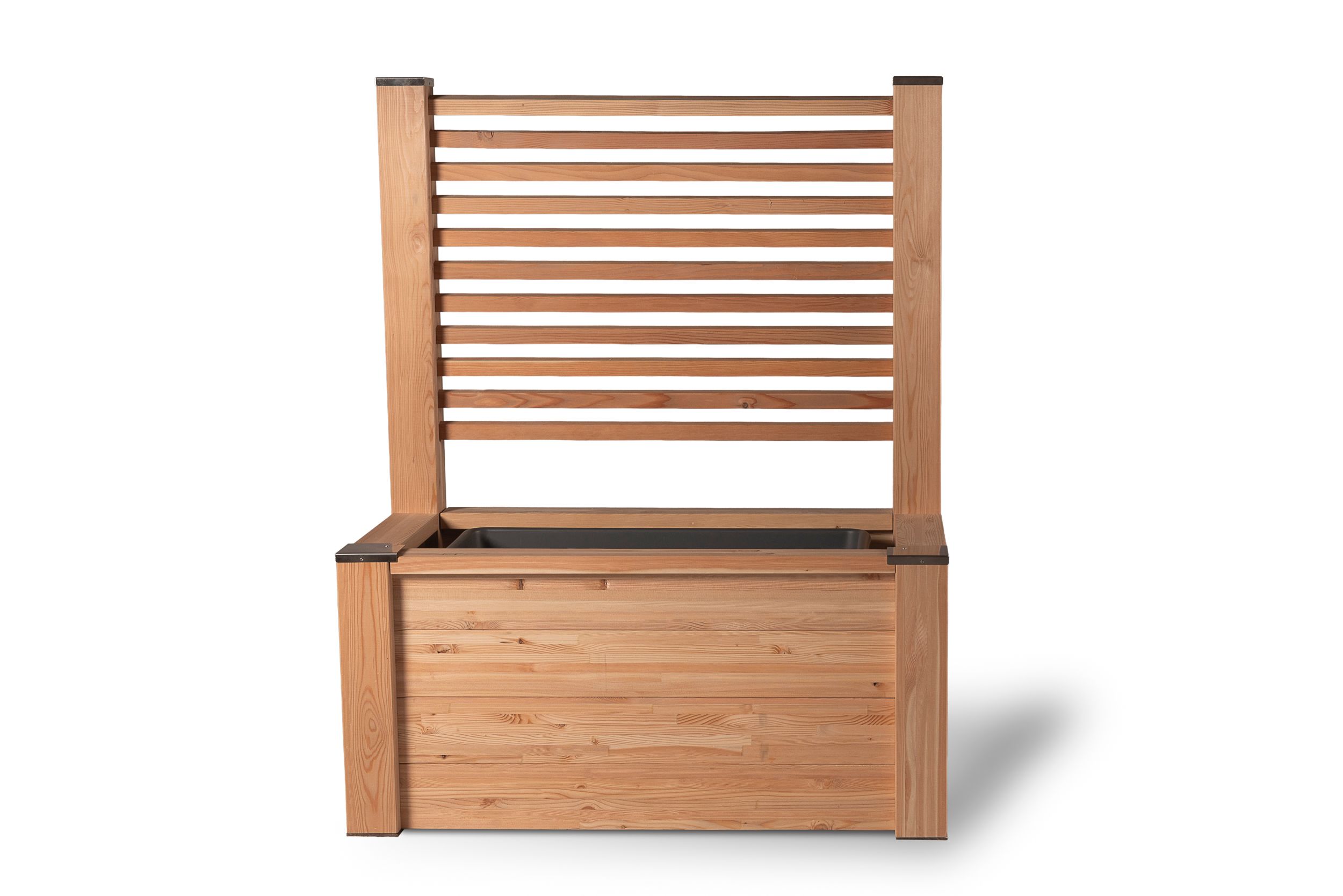 | Lieferumfang: | 16 x Holzelemente für Seitenwände, 2 x Einhängebügel Edelstahl, 4 x Steher Holz, 11 x Rankgitterstab Holz, 22 x Distanz Holz, 4 x Handlauf Holz, 4 x Steherabdeckung Edelstahl, 8 x Schraube Edelstahl, 4 x Drainagedistanz, 1 x Kunststoffeinsatz, Aufbauanleitung |
