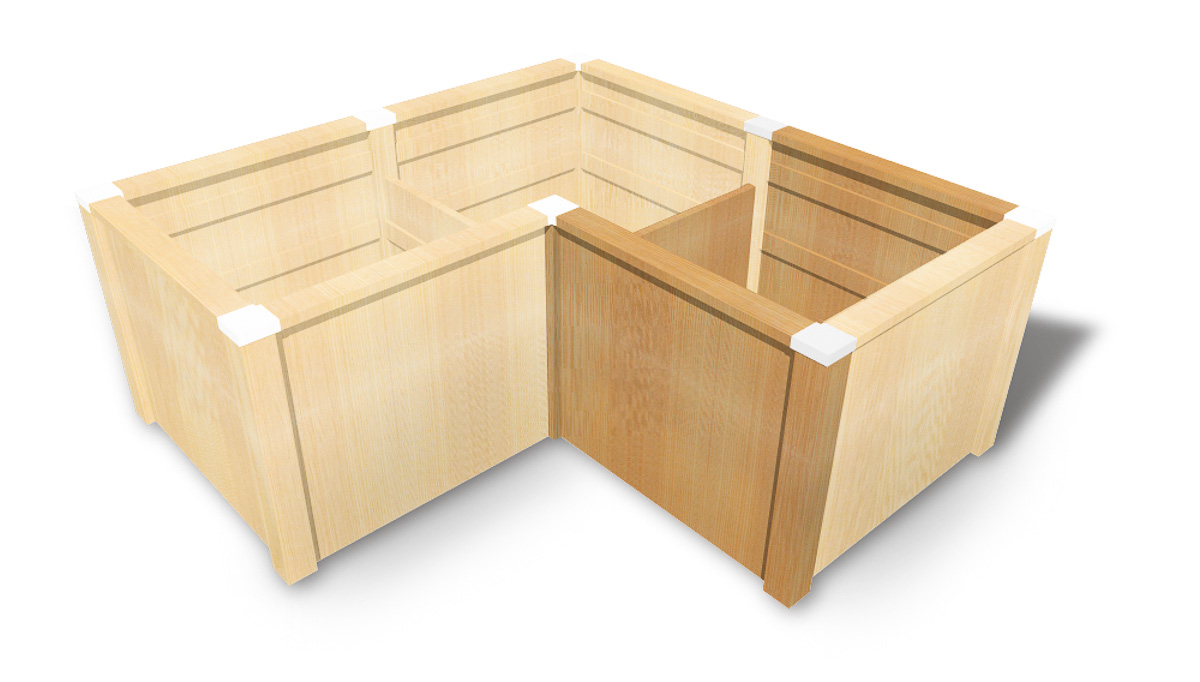 Timberra Hochbeete sind im patentierten Schwalbenschwanz - Verbundsystem gefertigt. Die vorgefertigten Seitenteile müssen ähnlich einem modularen Baukastensystem nur mehr in die Steher eingeschoben werden. Dann noch die Handläufe und Steherabdeckungen drauf, fertig ist das Hochbeet. Das Hochbeet Concordia Basic + Erweiterung + Winkel besteht aus einem Basismodul, einem Erweiterungsmodul und einem Winkelmodul.