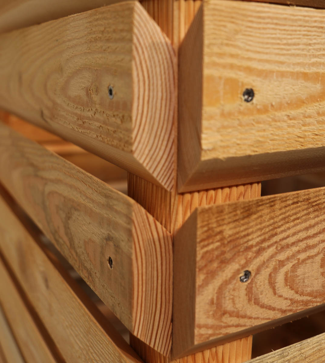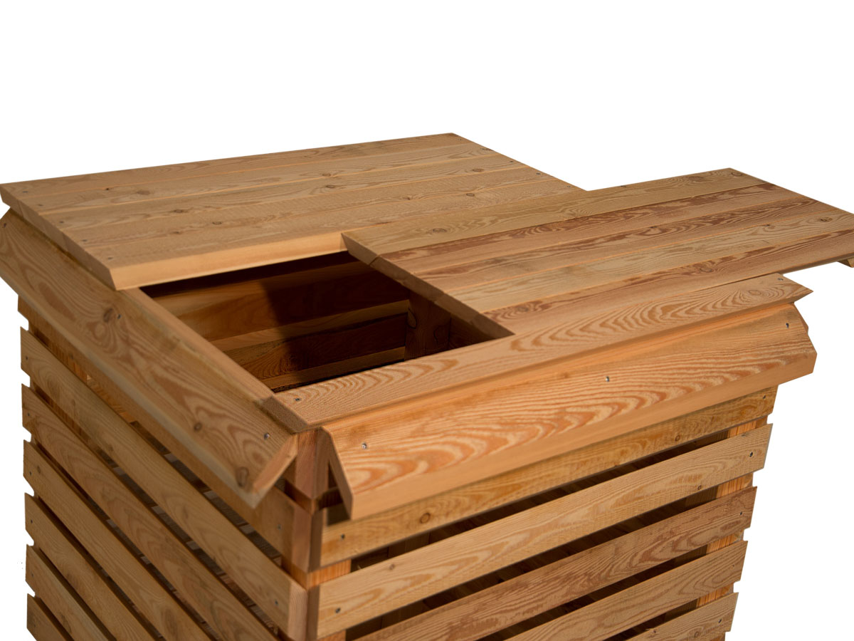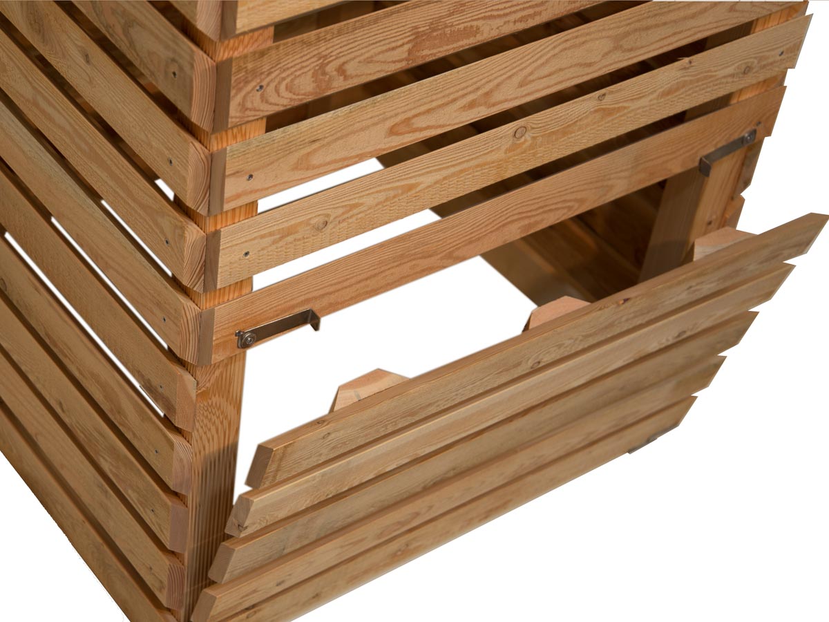 Die Komposter-Bauteile sind aus dem Holz der hochwertigen Tauernlärche gefertigt. Ein robuster und nachhaltiger Baustoff für einen natürlichen Garten.